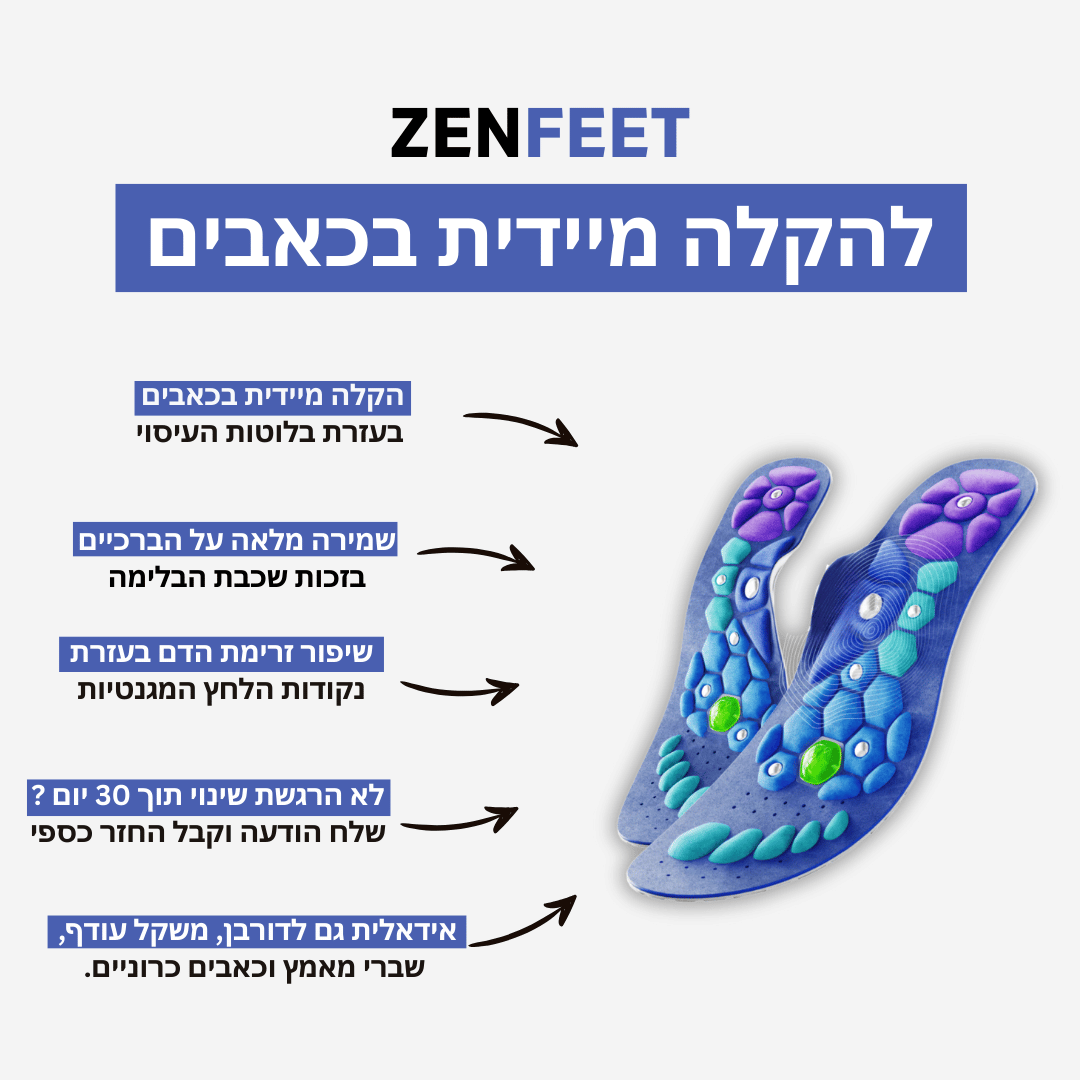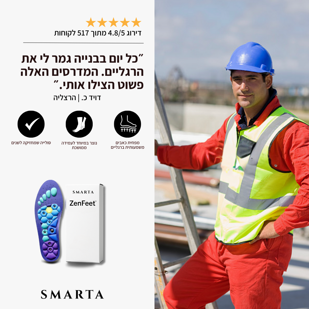 יותר מ-400 לקוחות שכבר רכשו את ZenFeet™ עומדים על הרגליים 8–12 שעות ביום – וכולם מדווחים על שינוי אמיתי.